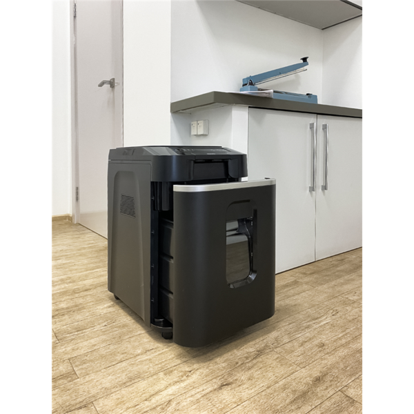 Уничтожитель бумаг Уничтожитель документов ГЕЛЕОС АП37-4, DIN P-4 (4 ур-нь секр.), фрагмент 3,9х12мм, АВТОПОДАЧА 220 лист (70г/м2), пл.карты/скрепки/скобы, 37 литров