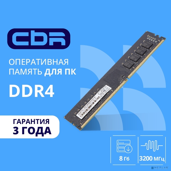 Оперативная память CBR DDR4 DIMM (UDIMM) 8GB CD4-US08G32M22-01 PC4-25600, 3200MHz, CL22 купить в интернет-магазине TPShop.Ru. Наличный и безналичный расчет, розничные и оптовые продажи. Самовывоз, доставка по Москве и МО, отправка во все регионы России.