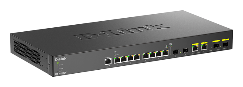 D-Link DXS-1210-12TC/B1A, PROJ L2+ Smart Switch with 8 10GBase-T ports and 2 10GBase-T/SFP+ combo-ports and 2 10GBase-X SFP+ ports.16K Mac address, 240Gbps switching capacity, 802.3x Flow Control, 802
