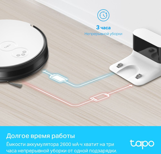 - До 3 часов непрерывной работы. Автозарядка — возвращение на базу при низком уровне заряда АКБ, продолжение уборки с места остановки. Технология Carpet Boost — автоматически увеличивает мощность всасывания при переходе на ковровое покрытие. Голосовое управление.