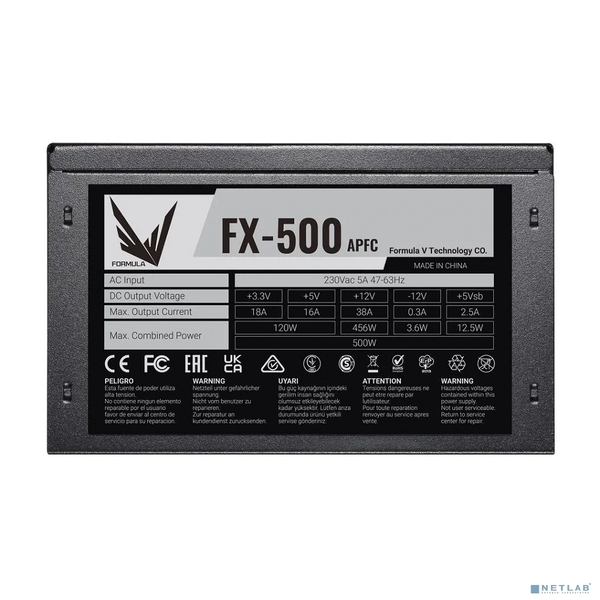 Блок питания Блок питания Formula ATX 500W FX-500 (24+4+4pin) APFC 120mm fan 4xSATA RTL