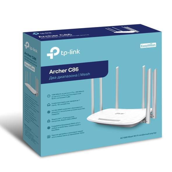 TP-Link Archer C86 Двухдиапазонный Wi-Fi роутер AC1900, до 600 Мбит / с на 2, 4 ГГц + до 1300 Мбит / с на 5 ГГц, LAN 4x1Гбит / с, WAN 1x1Гбит / с, 6 антенн