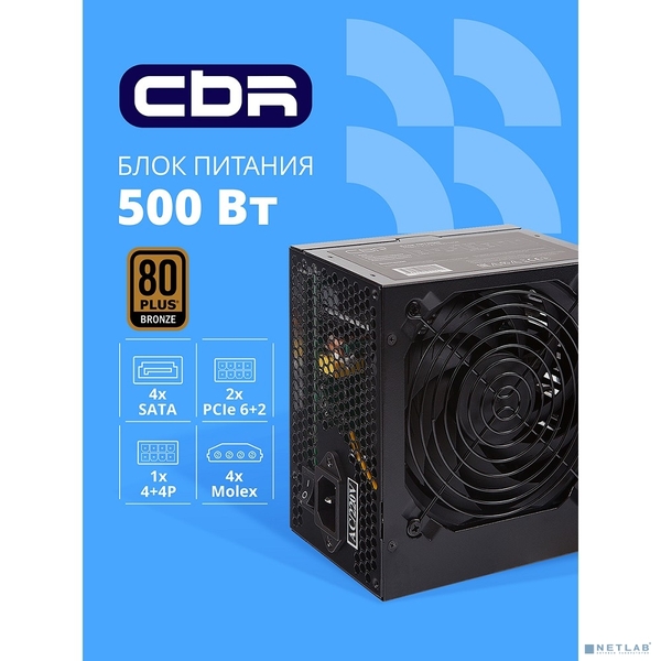 Блок питания Блок Питания CBR ATX 500W 80+ Bronze, APFC, 0.6mm, 20+4pin, 1*8-pin(4+4P), 2*6+2pin, 4*SATA, 4*IDE, 12cm fan, 1.5м кабель питания, черный [PSU-ATX500-12GM]