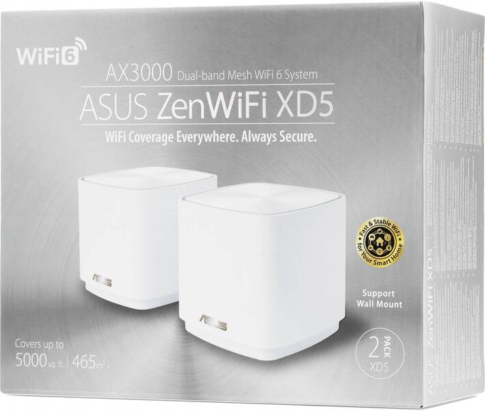- ASUS XD5 (W-2-PK) // AX3000 // 2 pack // 574 + 1201Mbps, 2,4 + 5 gGz, white