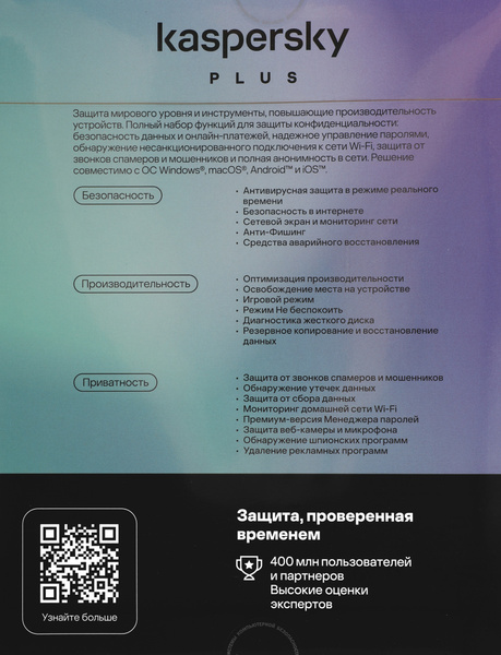 Антивирус Kaspersky Plus + Who Calls KL1050RBCFS купить в интернет-магазине TPShop.Ru. Наличный и безналичный расчет, розничные и оптовые продажи. Самовывоз, доставка по Москве и МО, отправка во все регионы России.