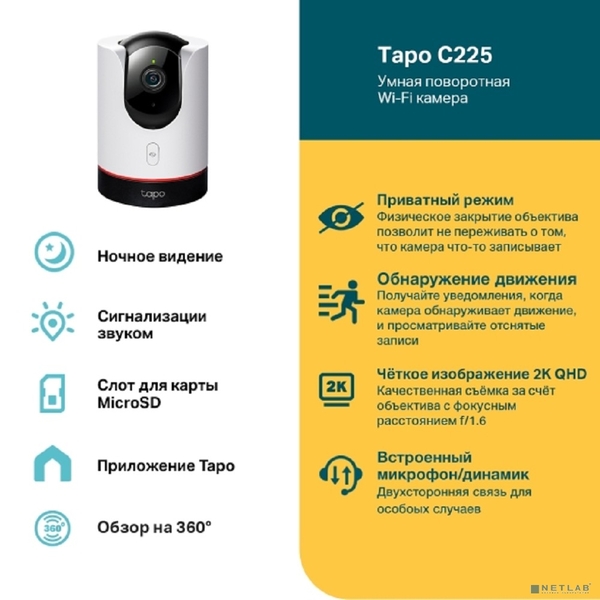 TP-Link Tapo C225 Умная домашняя поворотная камера купить в интернет-магазине TPShop.Ru. Наличный и безналичный расчет, розничные и оптовые продажи. Самовывоз, доставка по Москве и МО, отправка во все регионы России.