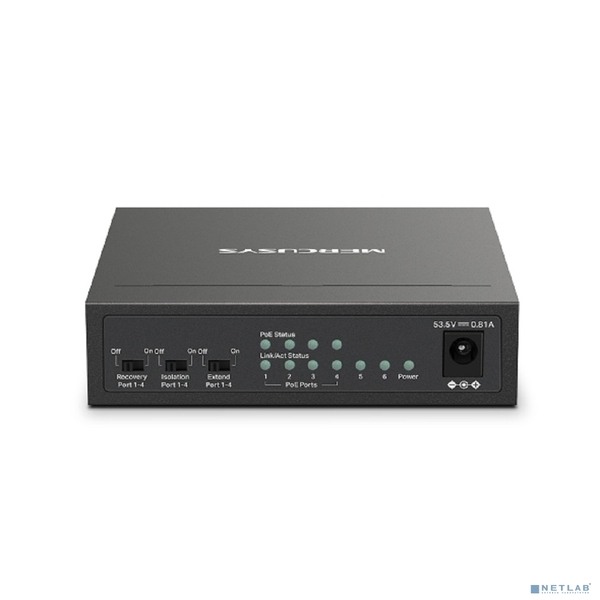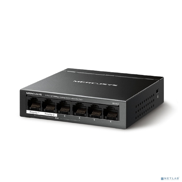 Неуправляемый коммутатор Mercusys MS106LP Настольный коммутатор с 6 портами 10/100 Мбит/с (4 порта PoE+)