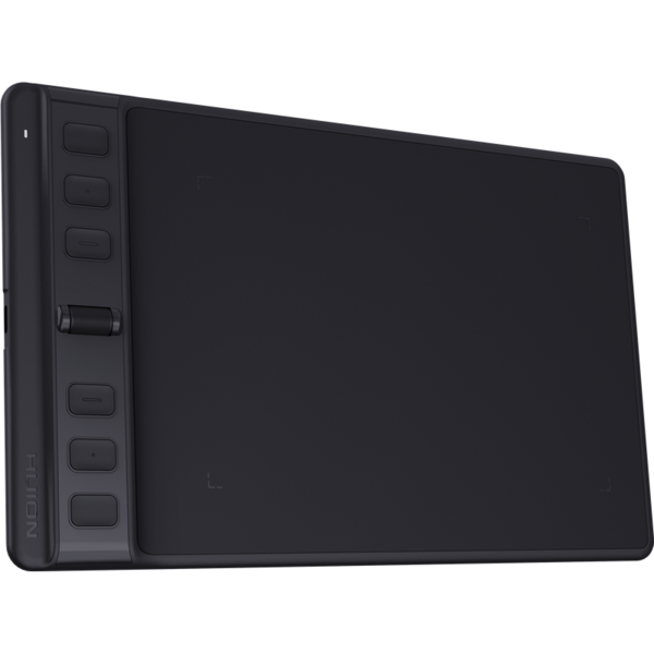 - Настраиваемый скроллер, как на мыши, очень удобен. Оборудован шестью настраиваемыми клавишами. Более фактурная рабочая область ощущается, как рисование на бумаге. Беспроводное перо PW110 с технологией Huion PenTech 3.0, повышает стабильность рисования.