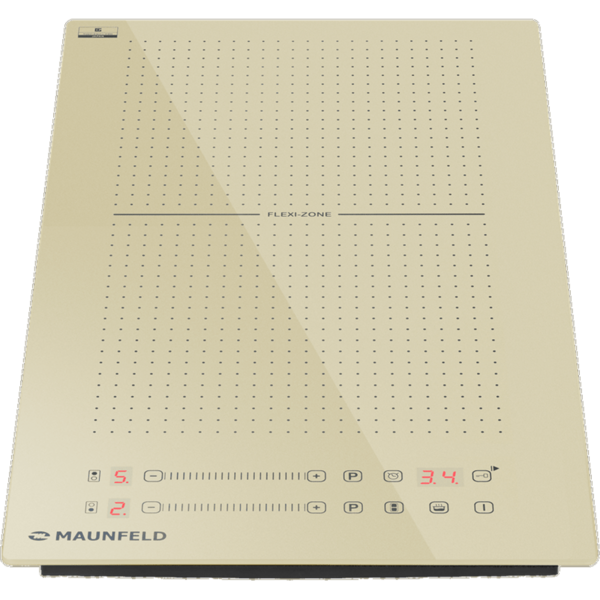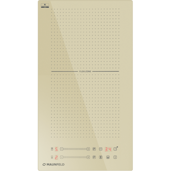 Индукционная варочная панель с Flex Zone и Booster MAUNFELD CVI292S2FBG, 2 конфорки, мощность конфорок 1200, 2000, сенсорное управление, таймер, быстрый нагрев, автоматическое выключение, бустер, блокировка панели, пауза, цвет бежевый