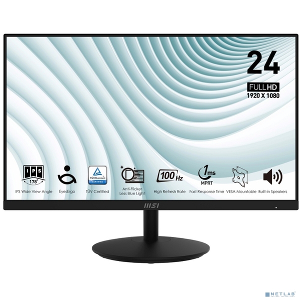 MSI 23.8" Pro MP242A черный IPS LED 1ms 16:9 HDMI M / M 300cd 178гр / 178гр 1920x1080 100Hz VGA DP FHD 3.07кг