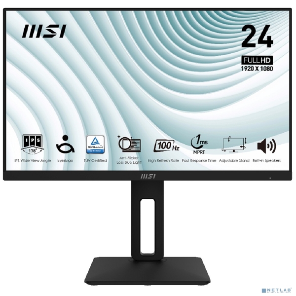 MSI PRO MP242AP 23.8" 16:9 FHD (1920x1080) IPS Flat, 1ms (MPRT), 1000:1, 100M:1, 300nit, 178 / 178, HDMI 1.4, DP 1.2, VGA (D-Sub), Speaker, Tilt, Swivel, Height, Pivot, VESA, 100Hz, Black, 1y war-ty