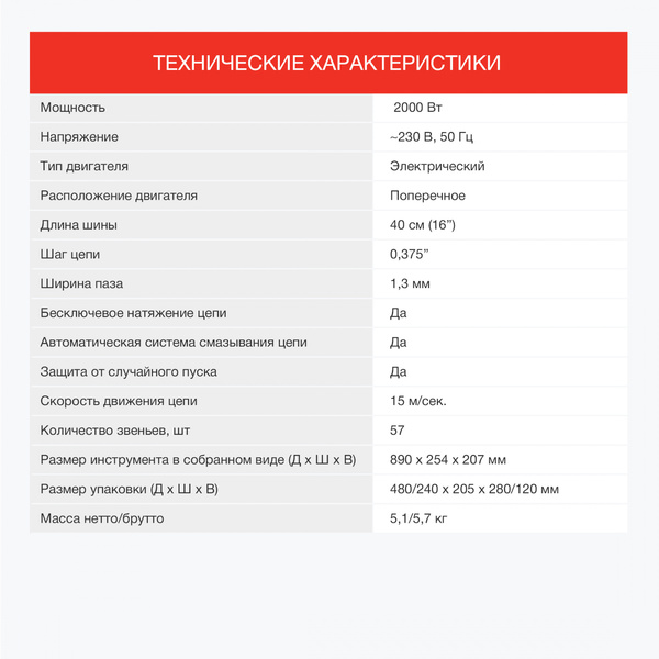 - Длина пильной шины