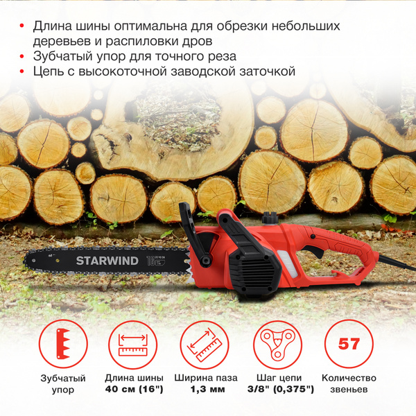 Электрическая цепная пила Starwind SE-2016 2000Вт дл.шины:16" (40cm)