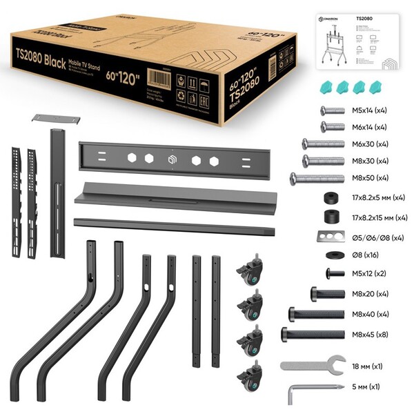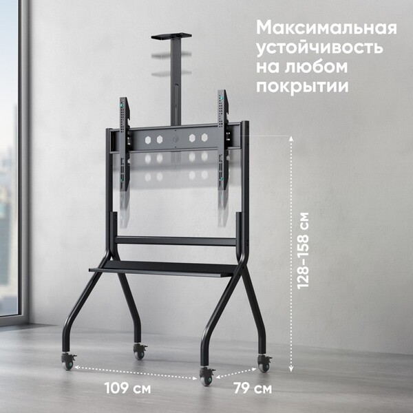 Мобильная стойка ONKRON на 1 ТВ/ 50-100" от 200х200 до 1000х600, макс нагр 120кг, регулируемая 1 полка, высота 1234-1685мм, колеса с блокировкой, черный купить в интернет-магазине TPShop.Ru. Наличный и безналичный расчет, розничные и оптовые продажи. Самовывоз, доставка по Москве и МО, отправка во все регионы России.
