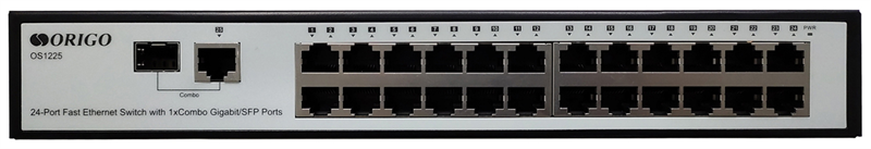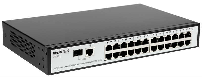 - ORIGO Неуправляемый коммутатор, 24x100Base-TX, 1xCombo 1000Base-T/SFP, комплект для установки в 19" стойку
