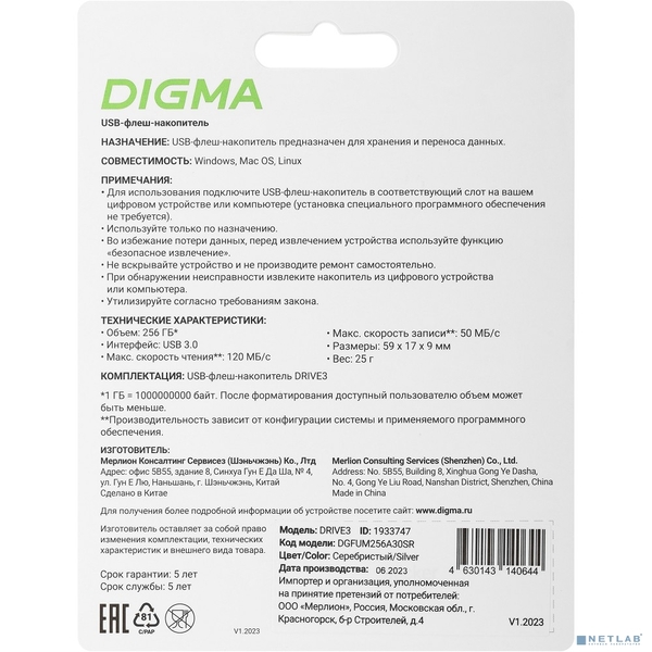 Флеш Диск Digma 256GB DRIVE3 DGFUM256A30SR USB3.0 серебристый купить в интернет-магазине TPShop.Ru. Наличный и безналичный расчет, розничные и оптовые продажи. Самовывоз, доставка по Москве и МО, отправка во все регионы России.