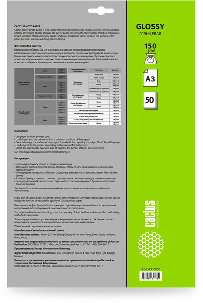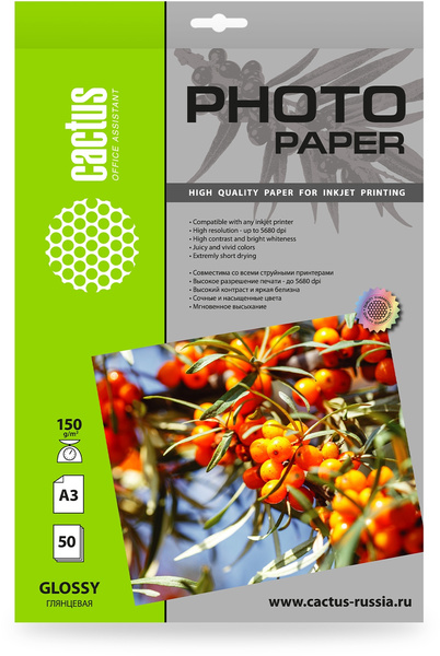 Фотобумага Cactus CS-GA315050 A3/150г/м2/50л./белый глянцевое для струйной печати купить в интернет-магазине TPShop.Ru. Наличный и безналичный расчет, розничные и оптовые продажи. Самовывоз, доставка по Москве и МО, отправка во все регионы России.