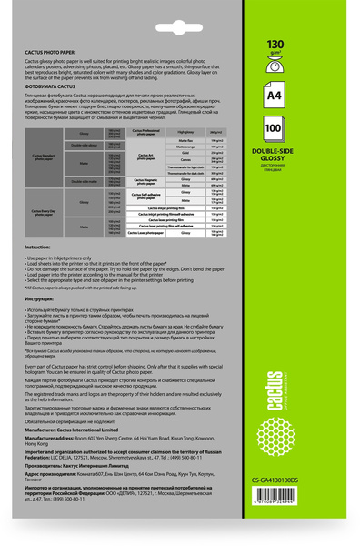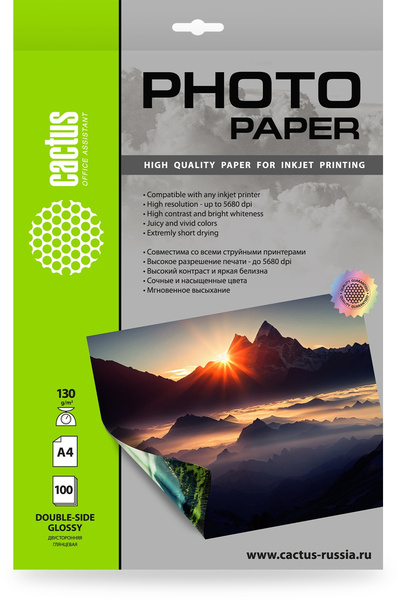 Фотобумага Cactus CS-GA4130100DS A4/130г/м2/100л./белый глянцевое/глянцевое для струйной печати купить в интернет-магазине TPShop.Ru. Наличный и безналичный расчет, розничные и оптовые продажи. Самовывоз, доставка по Москве и МО, отправка во все регионы России.