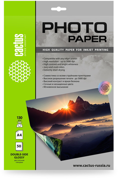 Фотобумага Cactus CS-GA413050DS A4/130г/м2/50л./белый глянцевое/глянцевое для струйной печати