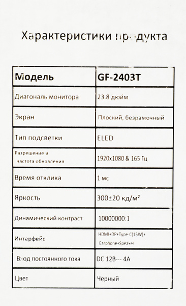Монитор Монитор Pinebro 23.8" GF-2403T черный IPS LED 5ms 16:9 HDMI M/M матовая 250cd 178гр/178гр 1920x1080 165Hz DP FHD USB 4кг купить в интернет-магазине TPShop.Ru. Наличный и безналичный расчет, розничные и оптовые продажи. Самовывоз, доставка по Москве и МО, отправка во все регионы России.