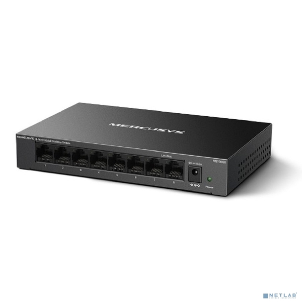 Неуправляемый коммутатор MERCUSYS MS108GS, 8-портовый гигабитный настольный коммутатор,стальной настольный корпус, возможность размещения на стене