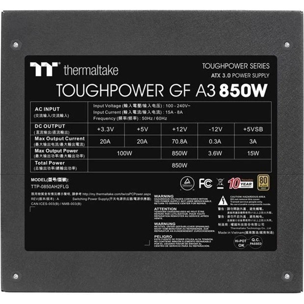 - Thermaltake Toughpower GF A3 Gen.5 850W / APFC / full CM / 80+ Gold