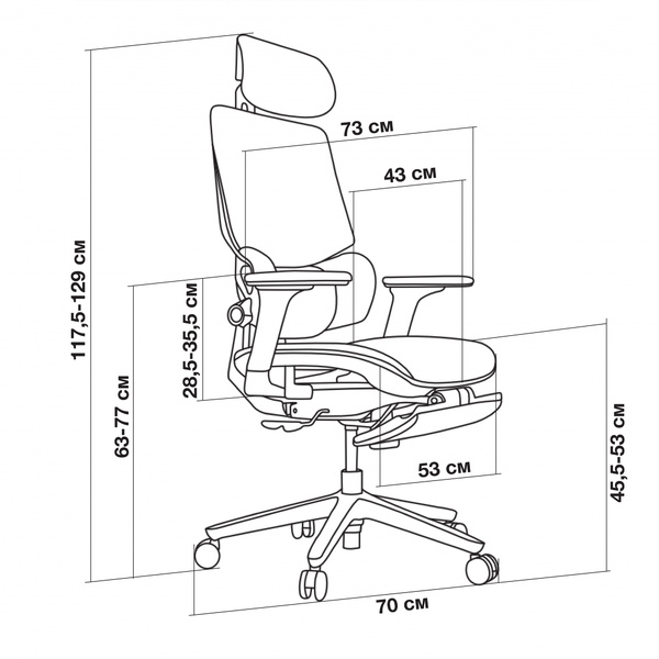 - Регулировка высоты подлокотников