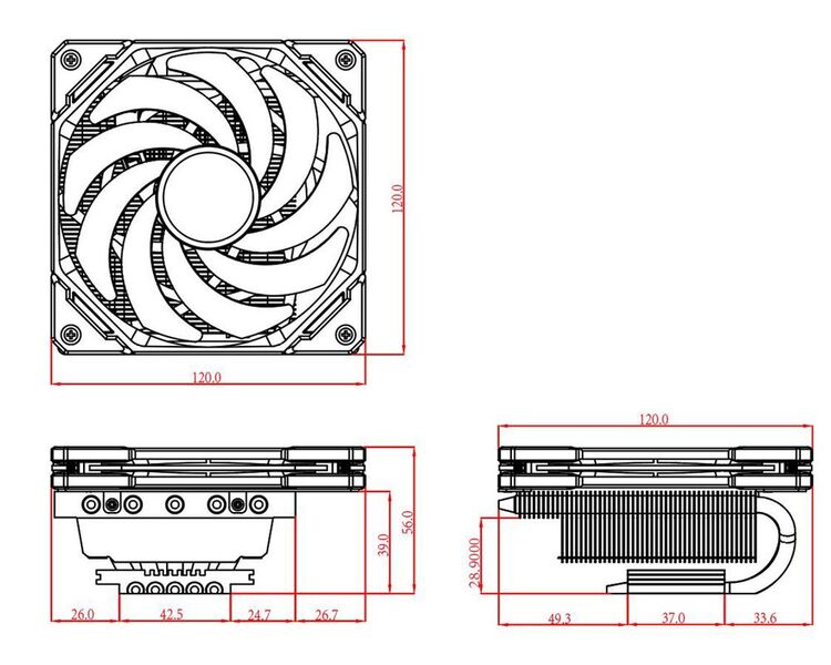 ID-COOLING IS-50X V3 LGA1700/1200/115X/AM5/AM4 низкопрофильный высота 56mm (27шт/кор, TDP 130W, PWM, 5 тепл.трубки прямого контакта, FAN 120mm, черный) BOX