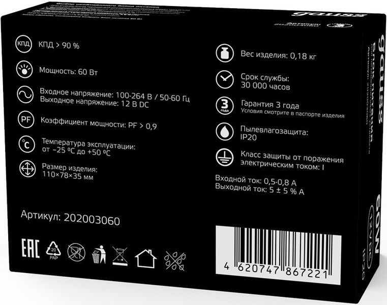 Блок питания Gauss 202003060 встраив. для лен.светод. черный купить в интернет-магазине TPShop.Ru. Наличный и безналичный расчет, розничные и оптовые продажи. Самовывоз, доставка по Москве и МО, отправка во все регионы России.