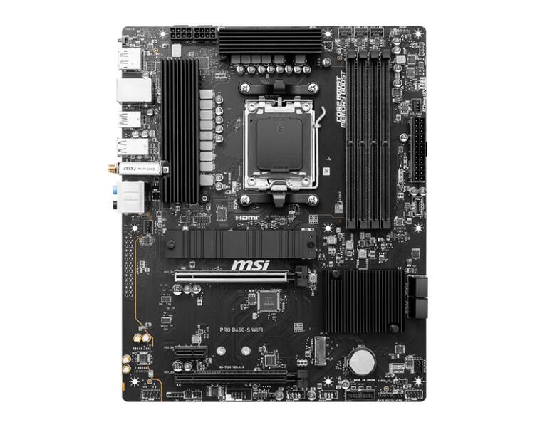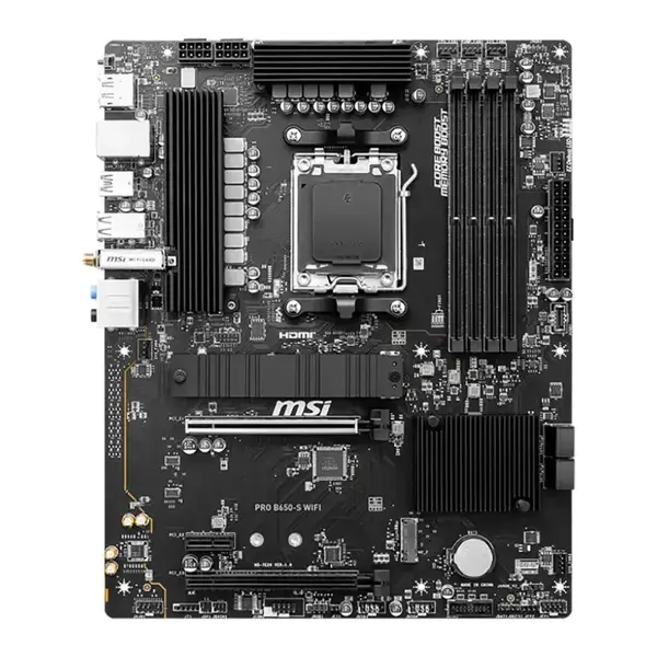 MSI PRO B650-S WIFI AMD B650 sAM5, 4xDDR5 (256GB), HDMI 2.1 / DP, 2xPCIe 4.0x16, 1xPCIe 3.0, 1xLAN (2.5GbE), Wi-Fi, BT, 4xSATA 6Gb / s, 2xM.2, 1xUSB-C, 7xUSB 3.2, ATX