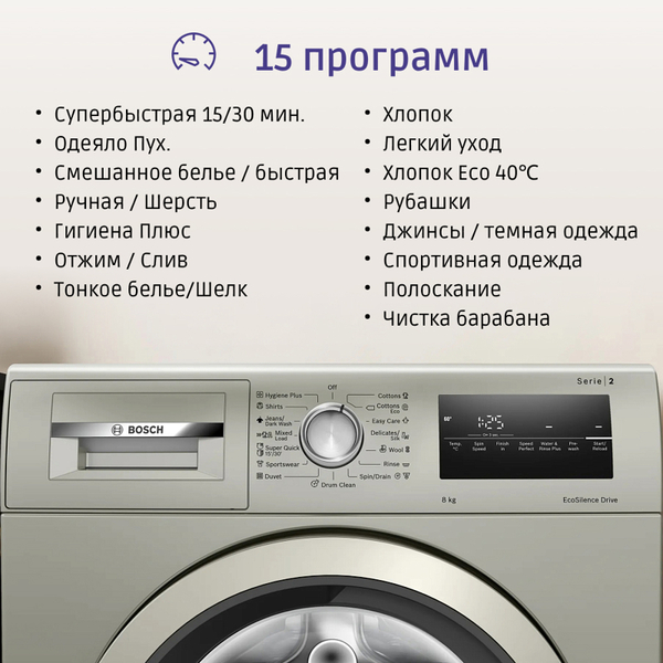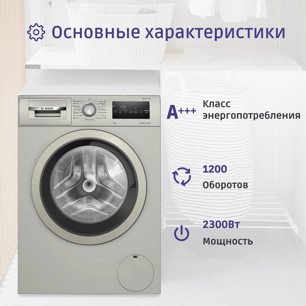 Узкая стиральная машина Стиральная машина Bosch WAN2420XME пан.англ. класс: A+++ загр.фронтальная макс.:8кг серебристый