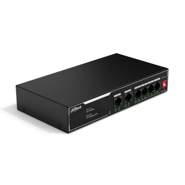 DAHUA DH-SF1006LP 6-портовый неуправляемый коммутатор с РоЕ, 6xRJ45 100Mb, суммарно до 36Вт, коммутационная ёмкость 1.2 Гбит/с, передача пакетов 0.89 Мпак/с, таблица МАС-адресов 2K, металл