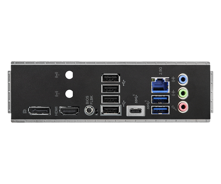 - USB 3.2 Gen2 Type-C, USB 3.2 Gen1 Type-C, 6xUSB 3.2 Gen1 Type-A, 8xUSB 2.0, SPI TPM, 2xТочки крепления антенн, HDMI, DisplayPort 1.4, RJ-45 LAN, Разъёмы HD-аудио: Линейный вход, Передние динамики, Микрофон
