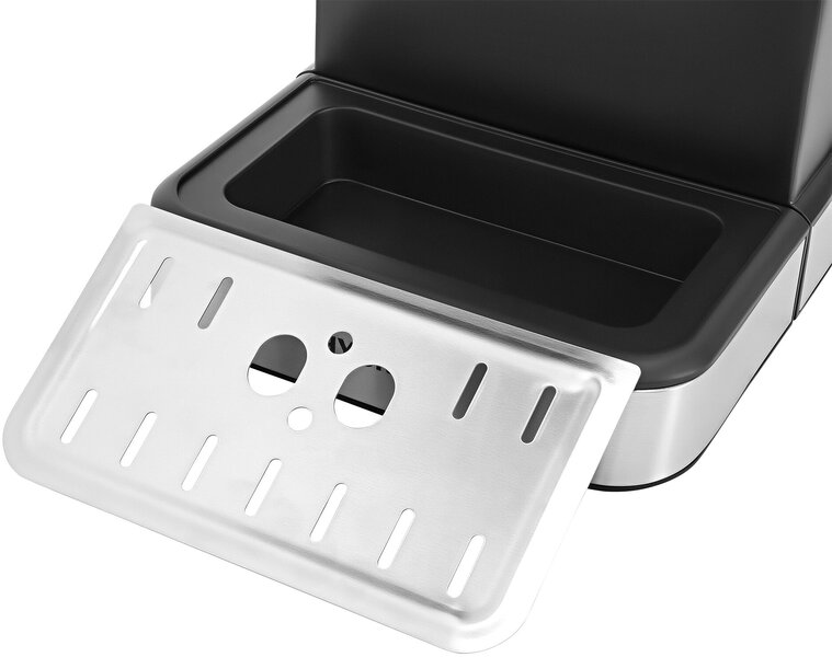 - Помпа 20бар для качественного экстрактирования, сенсорный дисплей, цветные эконки, термомтер и ручная программа для дозирования объема порции/температуры, ручной каппучинатор для взбивания молока, площадка подогрева чашек и съемный поддон для капель, фильтр-сито на 1 и 2 порции, темпер/мерная ложка.