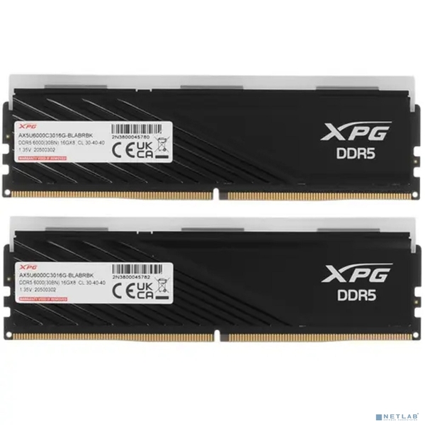 Оперативная память Модуль памяти ADATA XPG Lancer Blade DDR5 Общий объём памяти 32Гб Module capacity 16Гб Количество 2 6000 МГц Радиатор Множитель частоты шины 30 1.35 В RGB черный AX5U6000C3016G-DTLABRBK