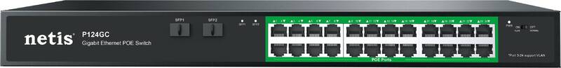 Неуправляемый коммутатор Коммутатор 24PORT 10/1000M POE 2 SFP COMBO P124GC NETIS