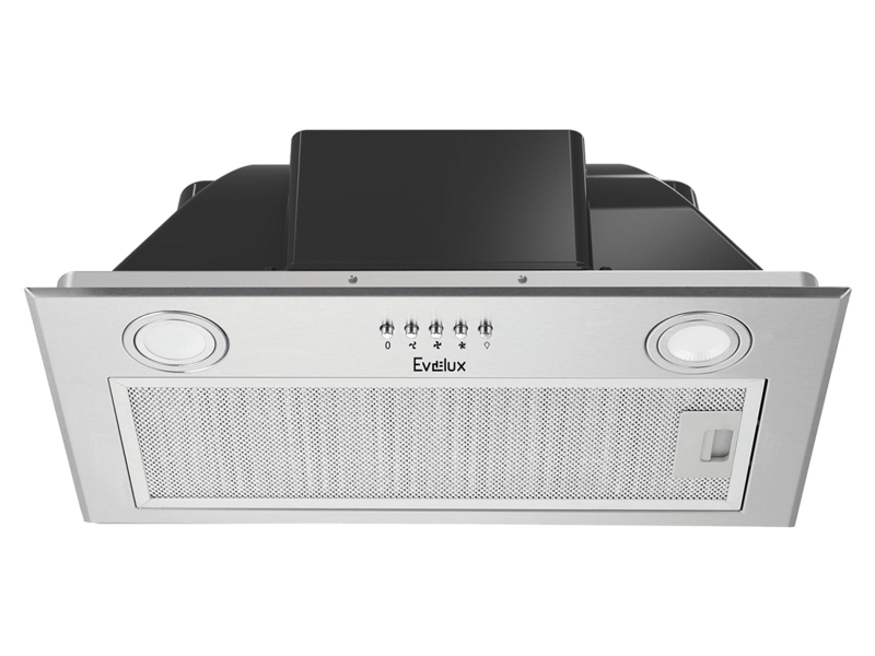 встраиваемая вытяжка, полновстраиваемая в шкаф, 60 см, отвод/циркуляция, механический контроль, 3 скорости работы, производительность 750 м3/ч, LED освещение, нержавеющая сталь, 525х291х197,5 мм