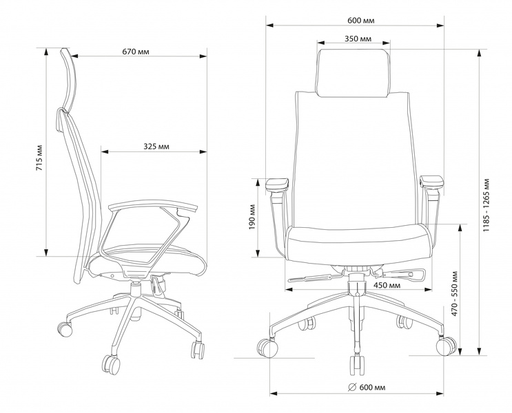 - Высота с подлокотниками MIN
