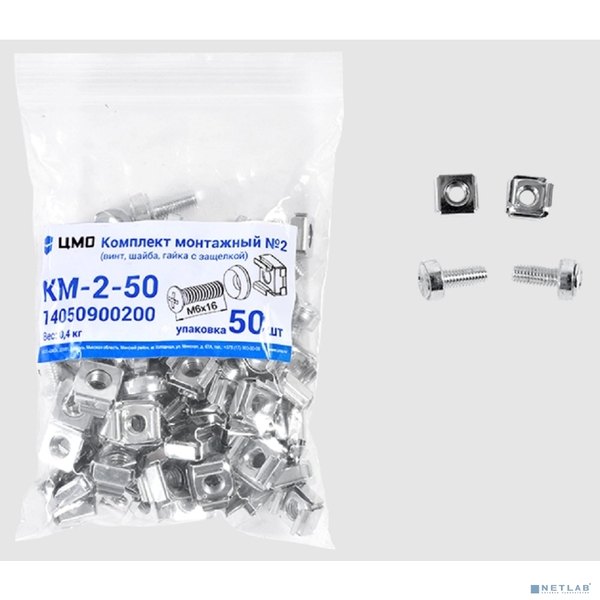 ЦМО Комплект монтажный № 2 (винт, шайба, гайка с защелкой), упаковка 50 шт. (КМ-2-50) (50 шт)