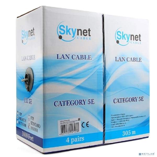SkyNet Кабель UTP indoor 4x2x0,51, медный, FLUKE TEST, кат.5e, однож. (305м) box, серый [CSP-UTP-4-CU] купить в интернет-магазине TPShop.Ru. Наличный и безналичный расчет, розничные и оптовые продажи. Самовывоз, доставка по Москве и МО, отправка во все регионы России.