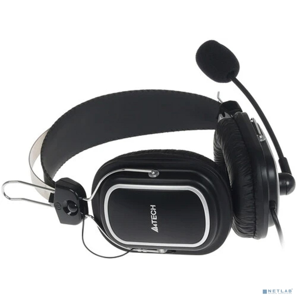 A4Tech HS-50,Черный(серебристые вставки) {Гарнитура стерео, монитор типа, закрытые, рег громкости, 20-20000Гц 32 Ом 97дБ, микр подвижн, кабель 2, 3.5 jack 3 pin}