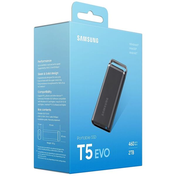 Samsung MU-PH2T0S / WW Т5 Portable, 2TB, V-NAND, USB 3.1 Type-C [R / W - 460 / 460 MB / s] Black