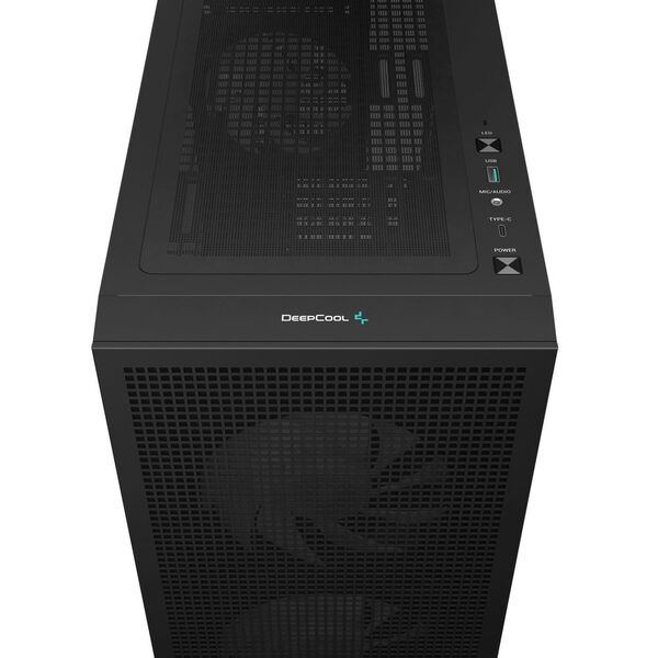 Корпус Deepcool CH360 без БП, боковое окно (закаленное стекло), 2x140мм ARGB LED вентилятор спереди и 1x120мм ARGB LED вентилятор сзади, черный, mATX