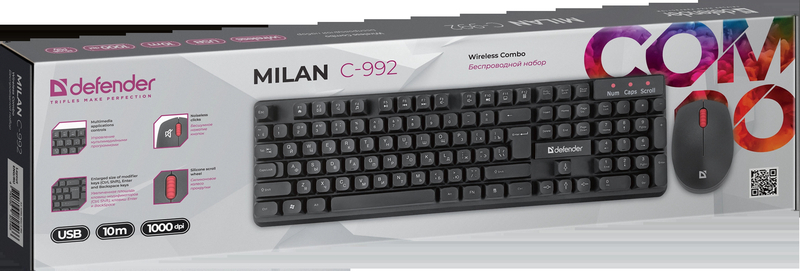 Клавиатура + мышка MILAN C-992 RU BLACK 45992 DEFENDER