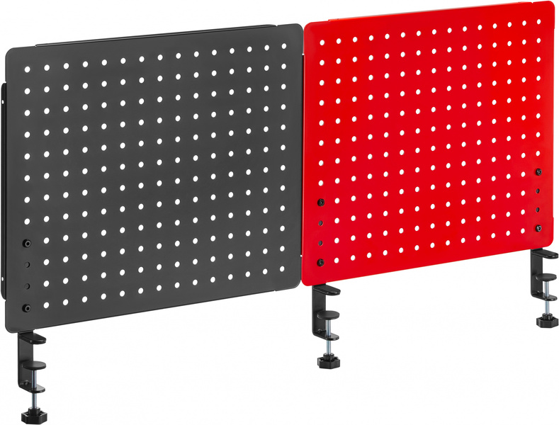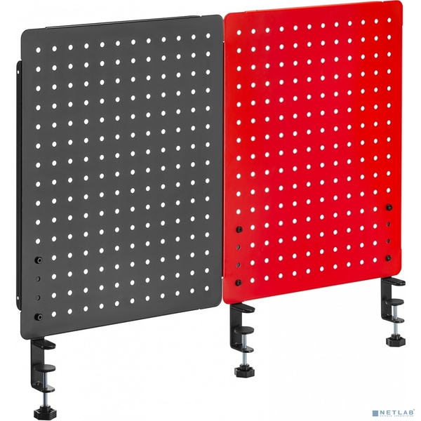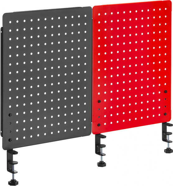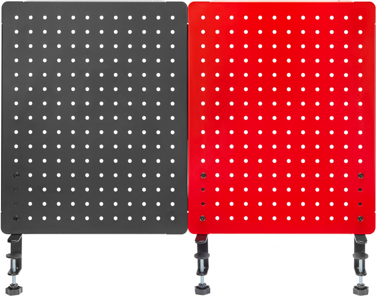 - Двойная перфорированная панель на струбцине для организации рабочего пространства на столе, цвет черный + красный