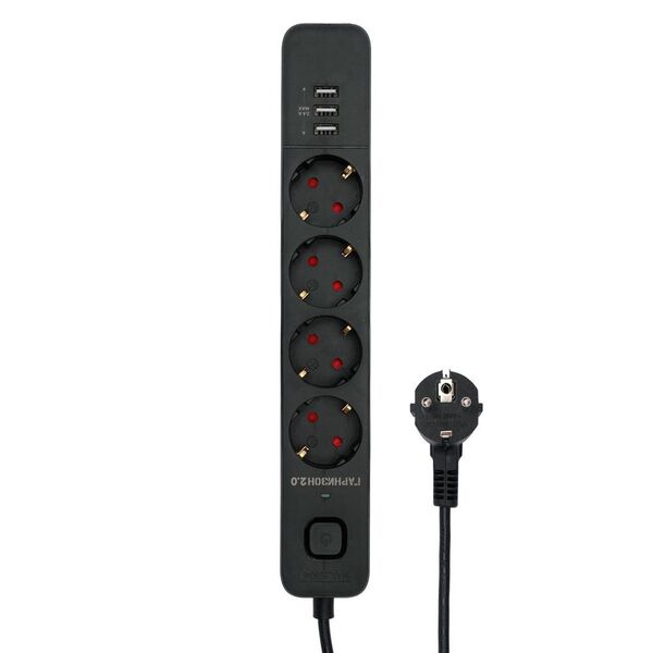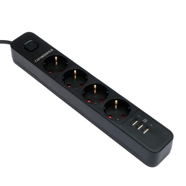 Гарнизон Сетевой фильтр 2.0 EPS-4-U3-B-2 Мультипорт, 4р, 10А, 3xUSB, 2м, ур.защиты 2+, черный, пакет (21446)