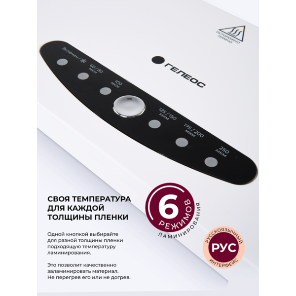 Ламинатор ГЕЛЕОС ЛМ A3-4В, А3, 2х250 (пленка 60-250 мкм), 300 мм / мин, 4 вала, реверс, пластиковый корпус, мах толщина 0.6 мм