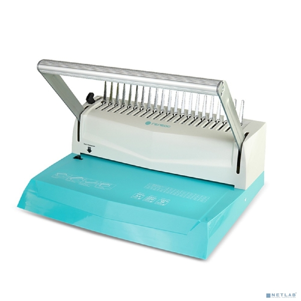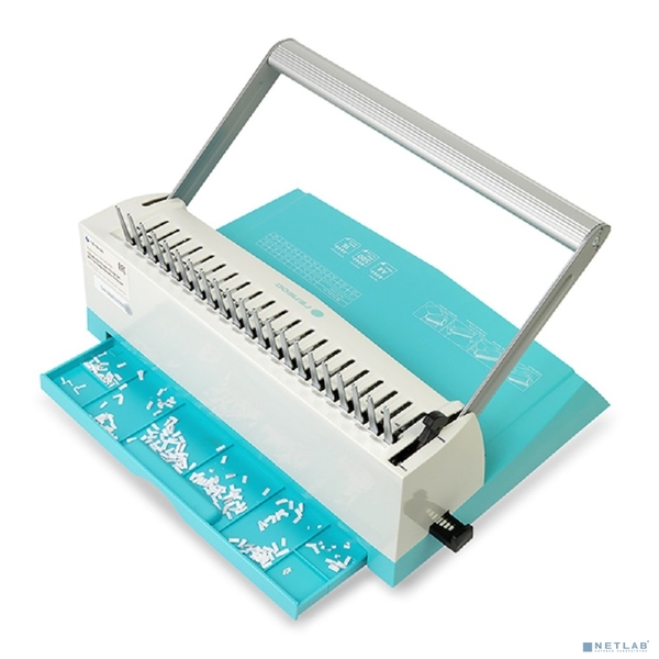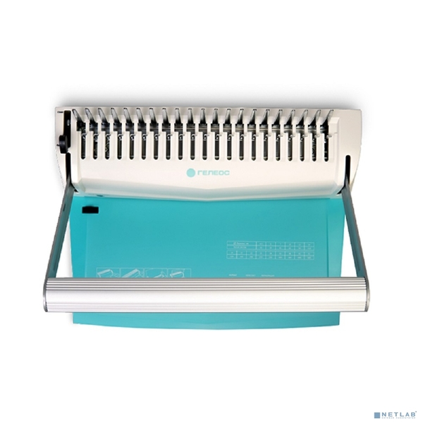 Уничтожитель бумаг ГЕЛЕОС Переплетчик БП-16 бирюзово-белый на пластиковую пружину,А4, ручная перфорация 16 листов, переплет макс до 500 л., глубина перфорации 2-3-4-5 мм