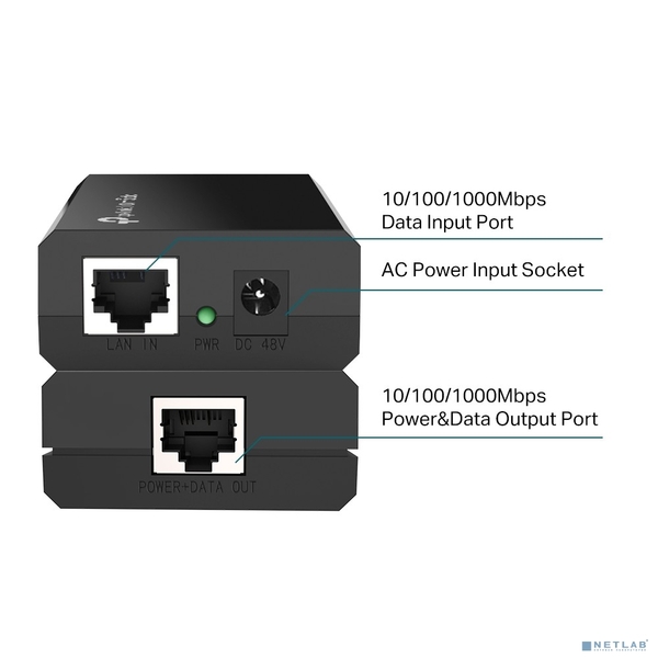 TP-Link Gigabit PoE Injector, 2xGb Ethernet ports, up to 15.4W, 802.3af