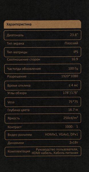 Монитор Монитор HKC 23.8" MB24V13FS129 черный IPS LED 4ms 16:9 HDMI M/M 1000:1 250cd 178гр/178гр 1920x1080 100Hz VGA DP FHD 2.77кг купить в интернет-магазине TPShop.Ru. Наличный и безналичный расчет, розничные и оптовые продажи. Самовывоз, доставка по Москве и МО, отправка во все регионы России.